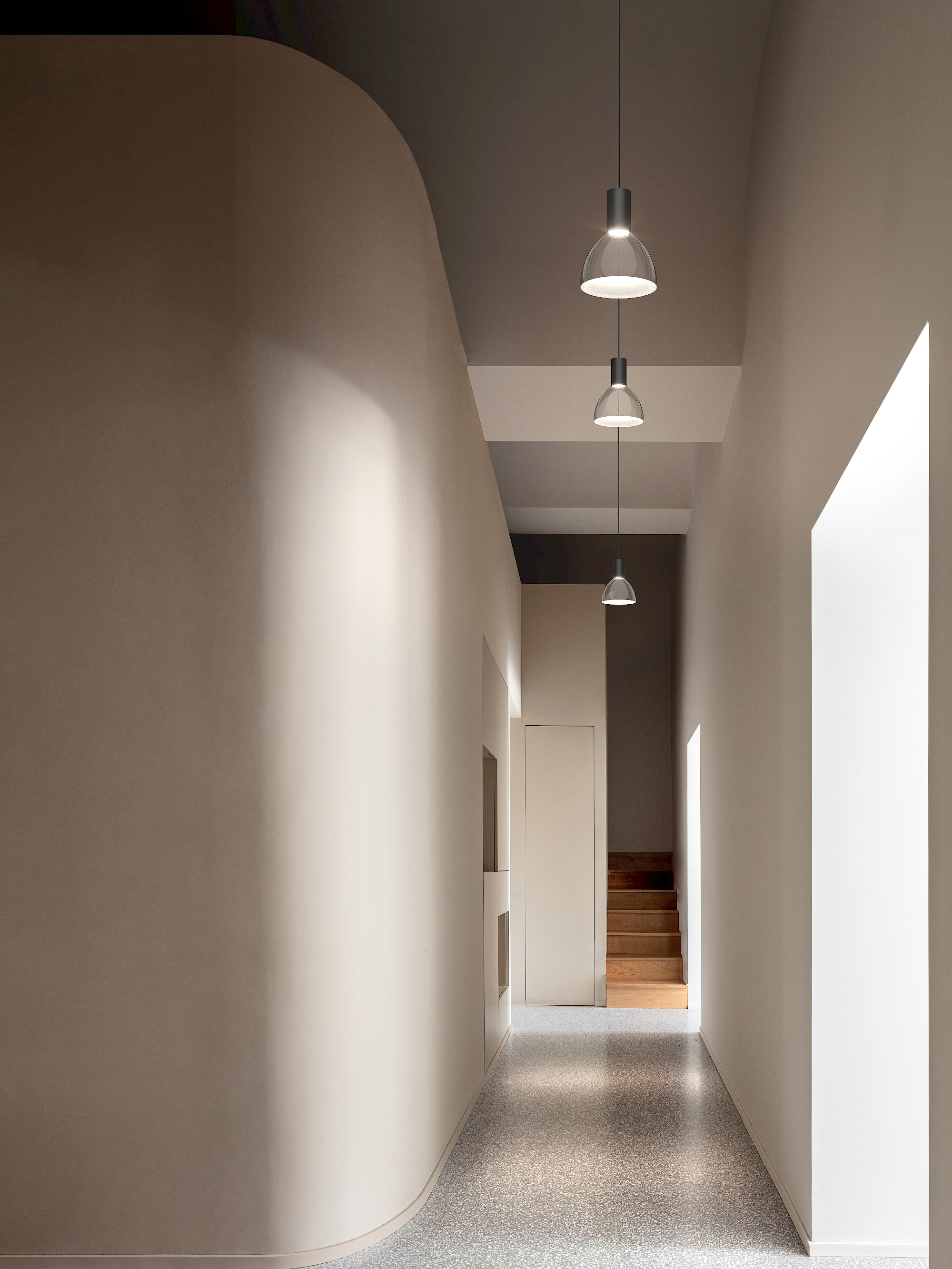 It is a low-voltage track system, simple and intuitive to configure, for use in public and domestic spaces. The adjustable, non-adjustable or suspended spots are inserted in the track. They can freely slide, be easily removed or implemented and completed with accessories as needed. aelectronics are integrated in the head of the spots, and it is possible to mount different optics for different beam angles. They are individually adjustable from the smartphone with DALI protocol (using the gateway that is also inserted in the track), in any position (top / bottom, left / right) they have been mounted. A special track uses a linear LED source for indirect light and at the same time powers the projectors. It is freely combinable within the system, as well as the tubular modules with diffused light. Tracks, connectors, and diffused light modules are formally integrated. It is possible to create continuous, linear, corner or perimeter modular structures, by means of rigid rods available in different lengths and - even without building false ceilings - power the luminaires from a single point of light. Individual spots complete the lighting possibilities offered by the system.