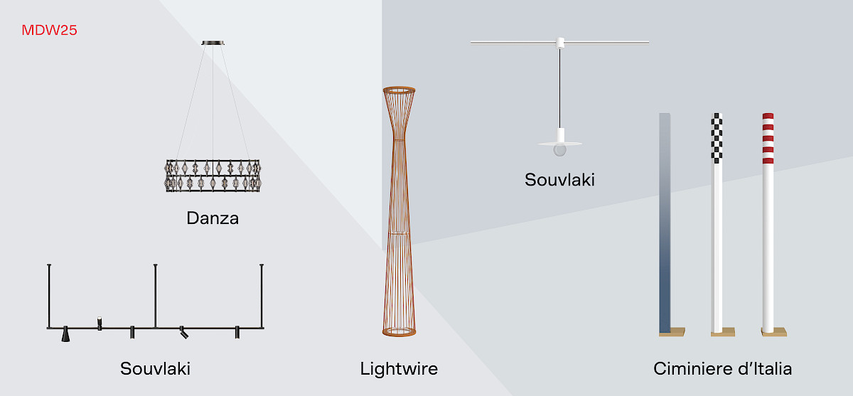 Lo spazio contemporaneo di We.Do Holding, situato nell'iconica struttura di Magistretti in Corso Europa 22, accoglie Souvlaki, sistema di illuminazione su binario progettato da Giovanni Lauda. Il nome deriva dallo spiedino greco, evocando il modo in cui gli apparecchi sono "infilati" nel binario brevettato a sezione circolare. Versatile e intuitivo, permette di orientare la luce verso l'alto o il basso, con elementi facilmente riposizionabili secondo le necessità.